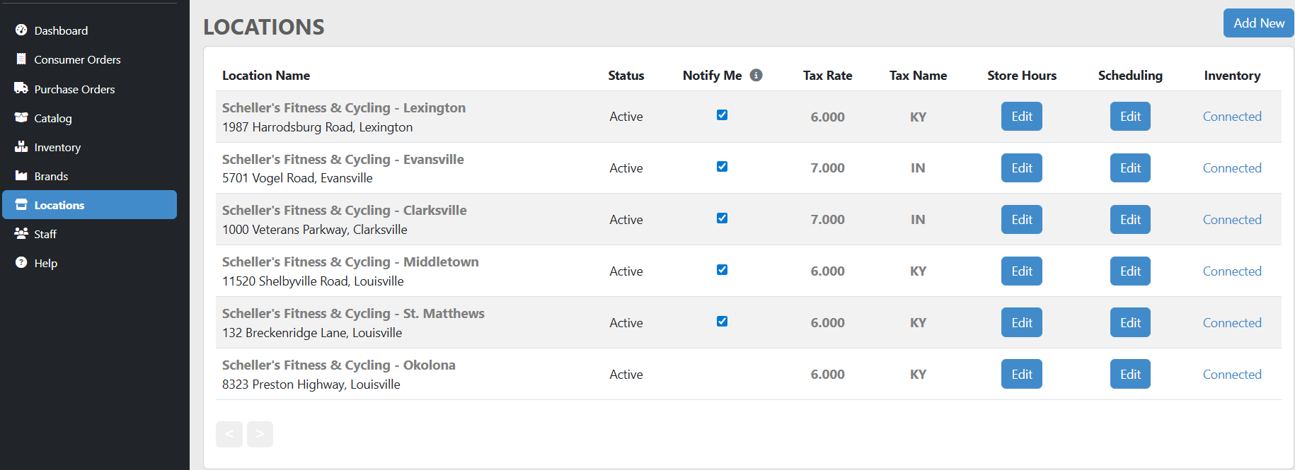 If you have multiple stores, each location has their own unique email and login. Inventory can be assigned by the primary account holder.